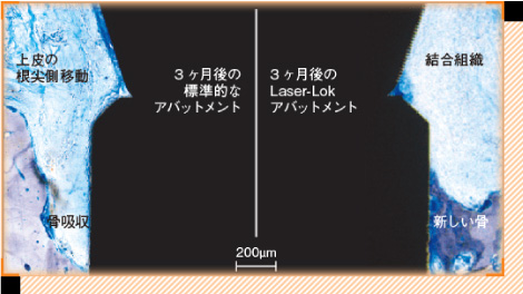 バイオホライズンインプラントの上部にはレーザーロックシステムという細かい溝があり、歯肉との結合組織性の付着を実現したものであるという特徴に着目し、当院での導入に至りました。